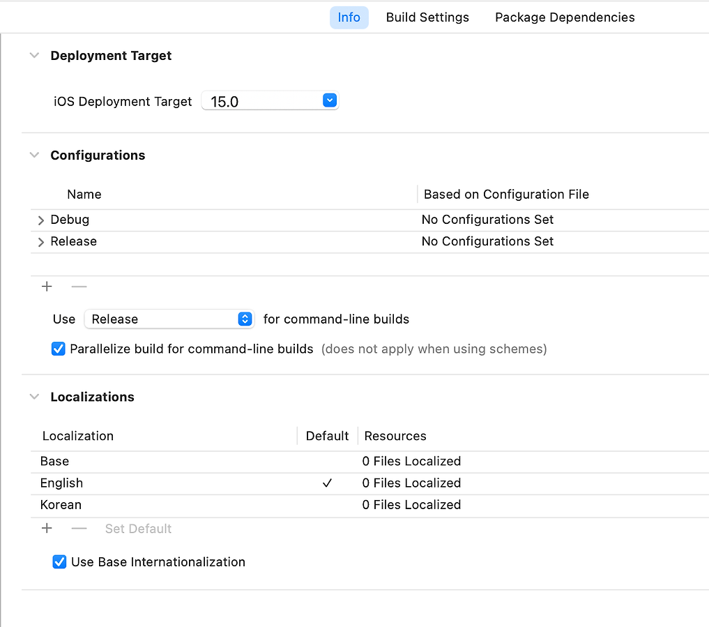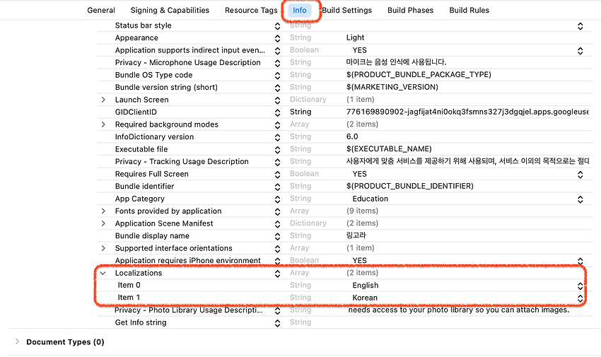 - - 프로젝트 info내 Localizations에 다국어 정보가 정확하게 들어가있는지 확인 (하단 사진 참고)