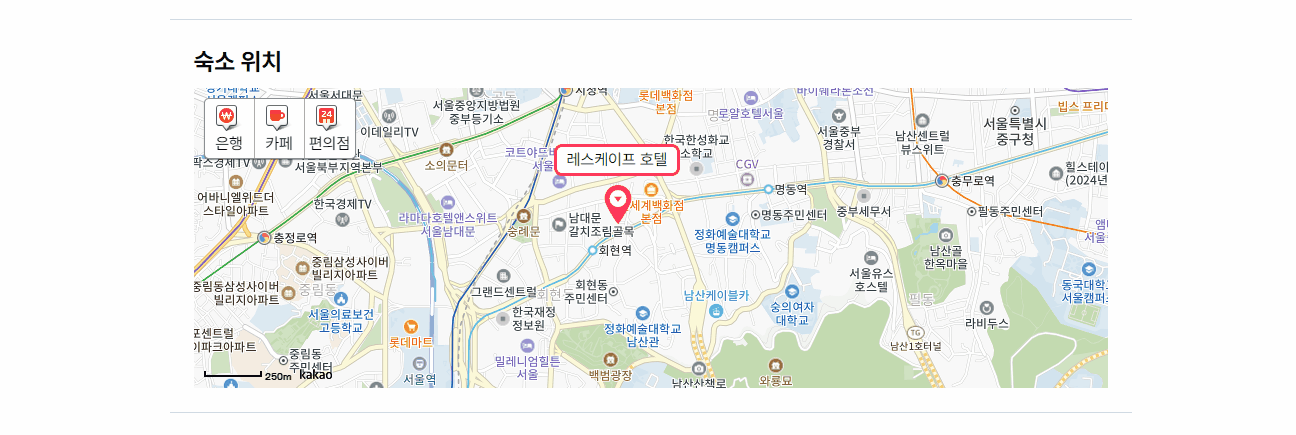 - kakao map api 연동 및 편의시설(은행,카페,편의점) 조회 기능