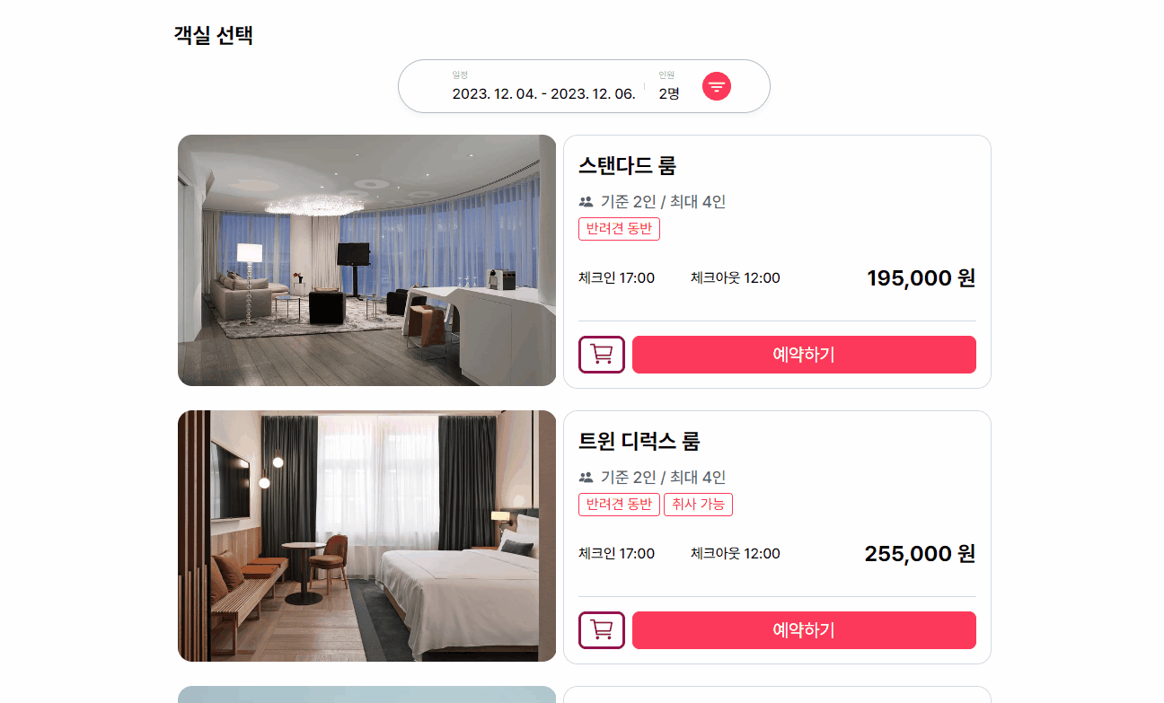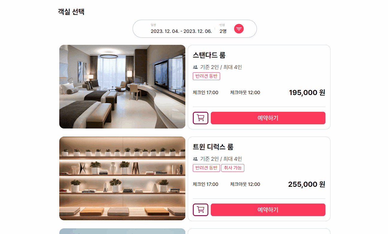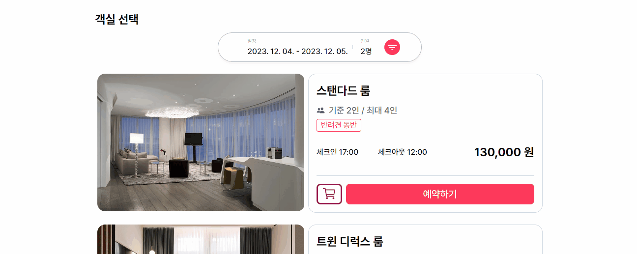 - 일정과 인원수에 따른 룸 조회 및 예약 마감 표시