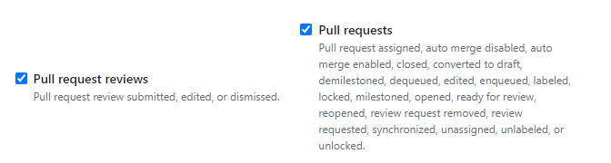 6. PR과 PR에 달린 review(코드리뷰)만 알림이 오게 하고 싶다면 여기만 체크해준다.