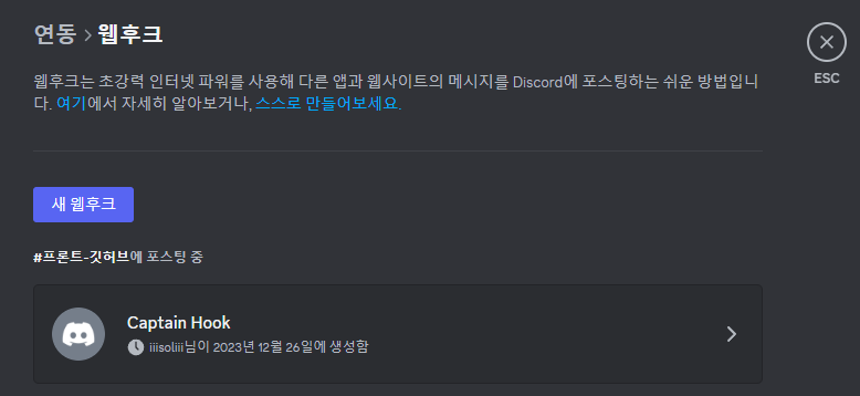 3. 새 웹후크를 만들어준다.